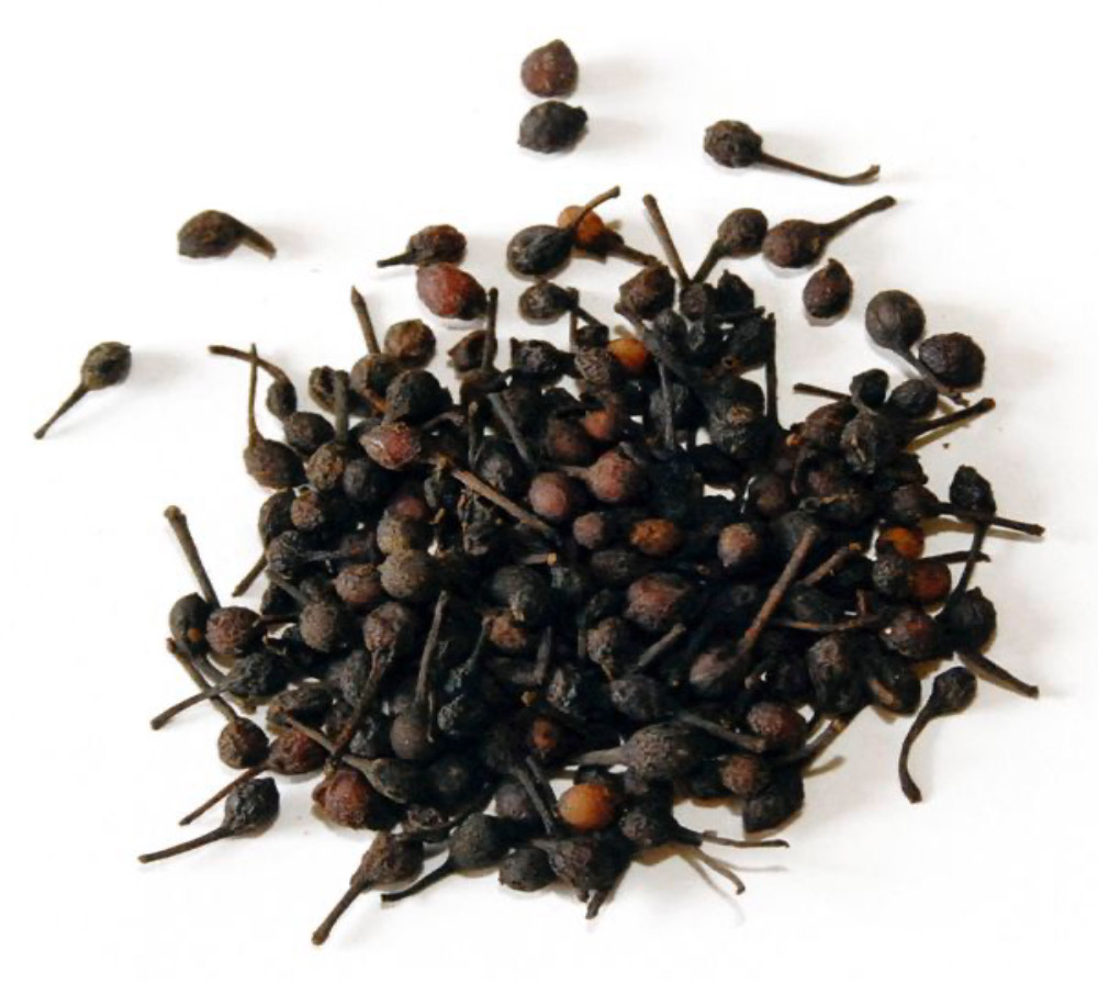 Les grains de poivre sauvage Voatsiperifery de Madagascar se reconnaissent facilement avec leur petite queue. Côté saveur, ce poivre est un concentré d’arômes aux notes d’agrumes et d’épices douces.